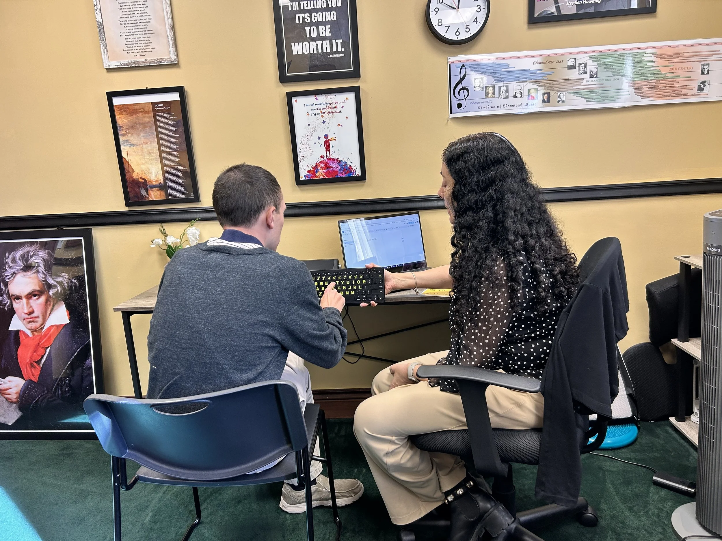 Speller and Communication Partner in Action at Mouth to Hand Learning Center - Mount Kisco, NY